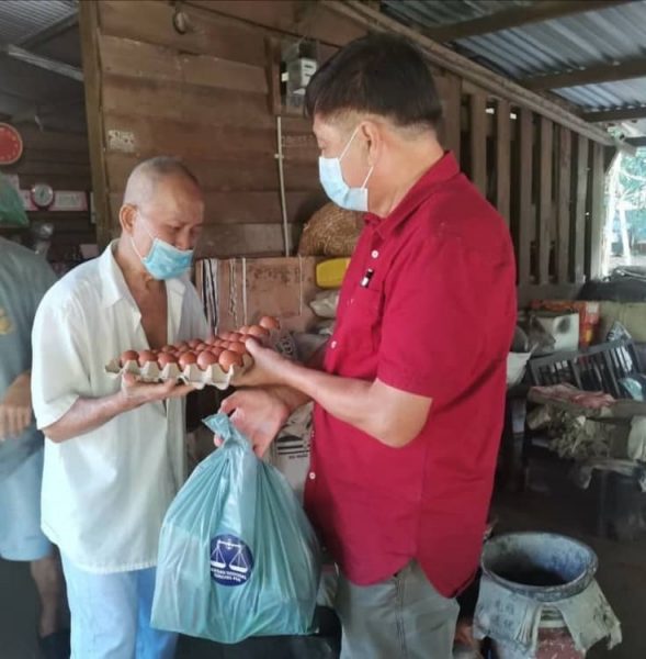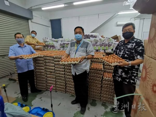 由热心商家潮成农场赞助3万粒鸡蛋,今早在服务中心主任陈勇鸣的带领下,与服务中心团队把鸡蛋分派到北干那那新村、笨珍及龟咯数个地区,不分种族的沿户派发,把每一个祝福带给大家。
