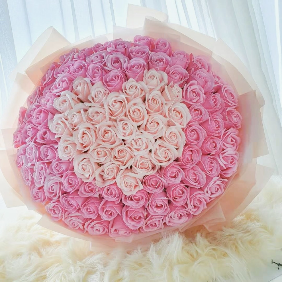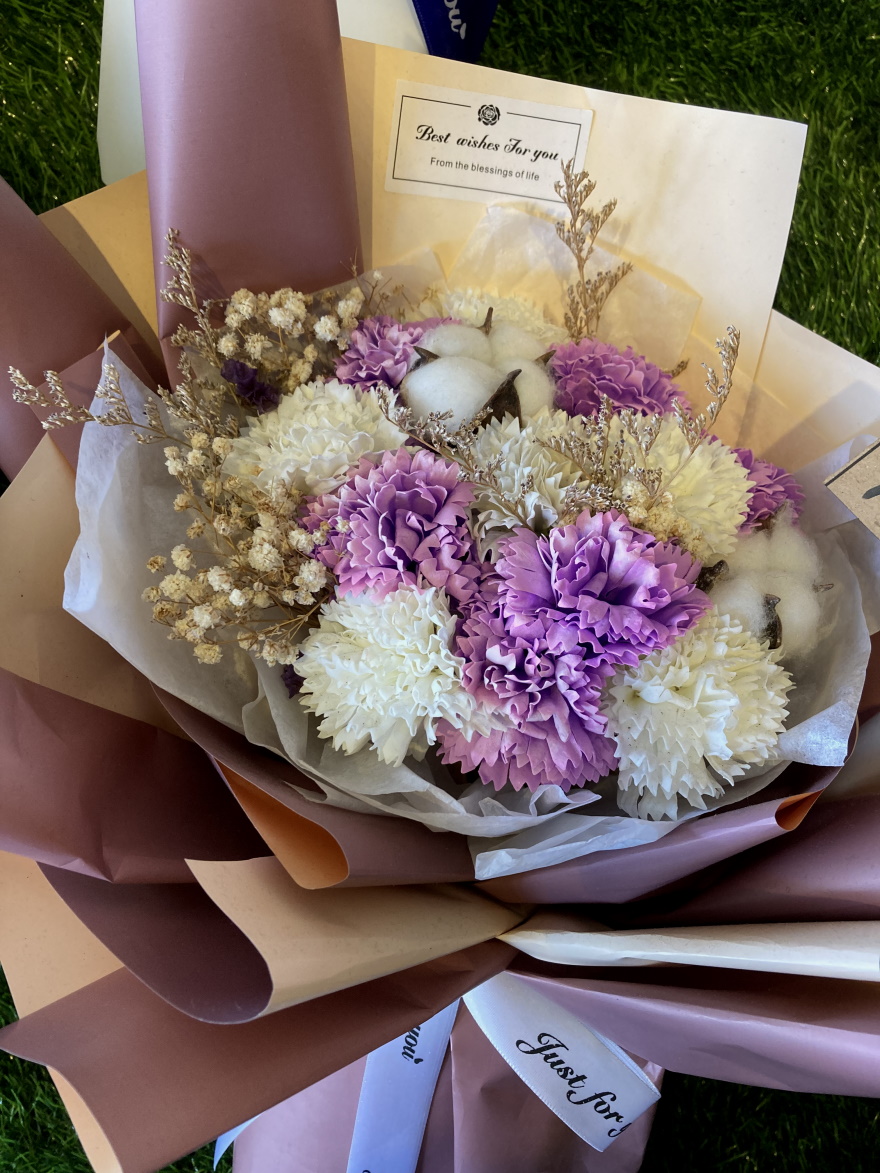 除了一般鲜花,还可以送上其他不同材料制成的花束,而在过去一年多的疫情下,香皂花因易于快递传送和耐久,越加获得昔加末地区消费者的青睐。