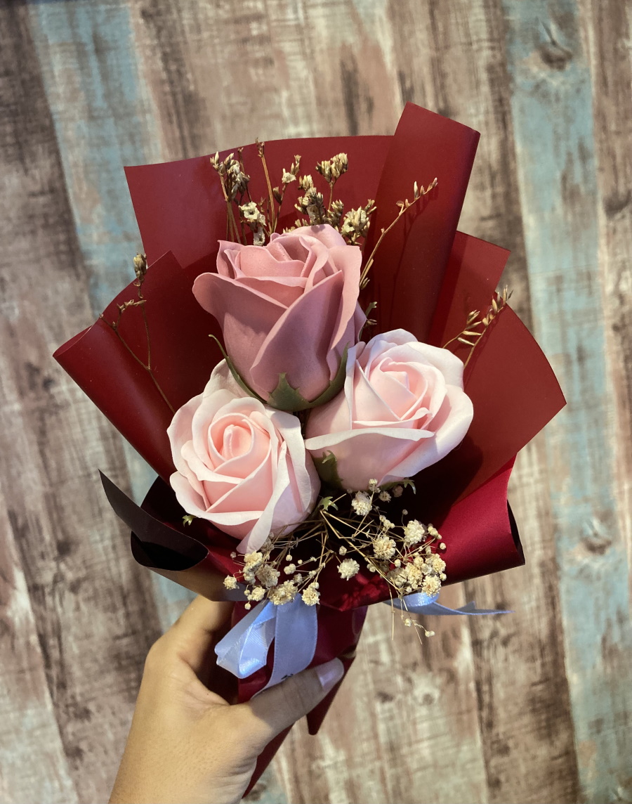 花艺业者郑智峰向星洲日报《大柔佛》社区报表示,香皂花的花瓣是由香皂所制成,与鲜花的相似度超过90%,还带有淡淡的皂香,花瓣触感与鲜花则有较明显的分别。