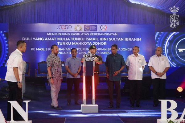 (新山27日讯)柔佛王储东姑依斯迈代表柔佛苏丹依布拉欣陛下,在拿督翁新镇颁发488份“柔佛民族梦想房屋”单位钥匙,兑现苏丹陛下的承诺。