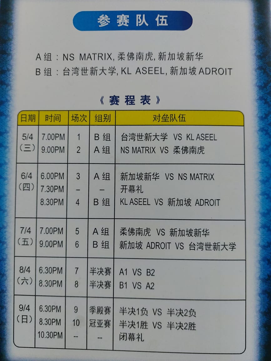 第六届陈诗圣杯国际男子篮球邀请赛赛程: