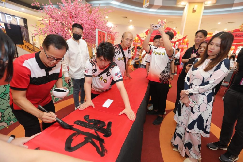 马来西亚书画家联盟柔佛州联委会副会长曾竹先也在现场挥毫,为展览增色。