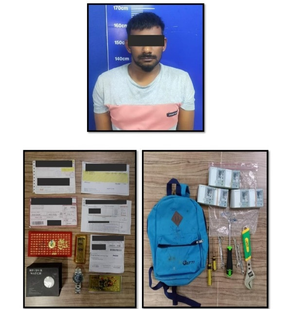 警方在逮捕男子后起获现金、金饰、手机、当铺收据、破门行窃的干案工具等,而尿检显示,嫌犯对冰毒呈阳性,并且有8宗刑事案件和1宗毒品案案底。