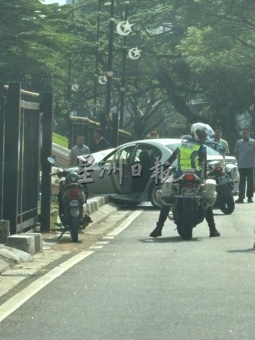 一辆汽车不知何故横行直撞围篱,截至上午11时,交警仍在现场调查及维持交通秩序,事故造成该路段往新山方向堵塞,途经的驾驶者受促小心驾驶,放慢车速。