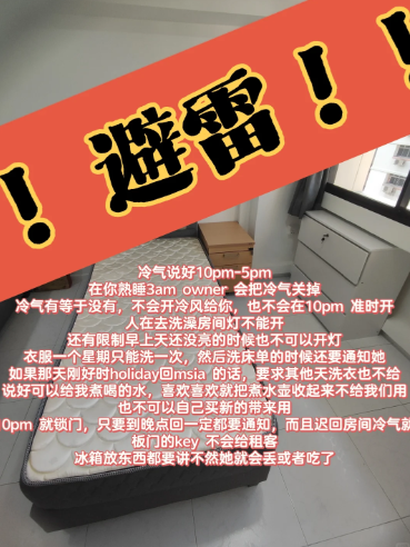 来自马来西亚的25岁男子,在社交媒体分享他在新加坡租房间的遭遇,并直言自己“大踩雷”。