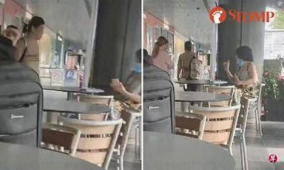 两名公众目睹事发经过,并将事件放上STOMP。他们说,事发时,有一名妇女想在用餐区替孩子换尿布,但另一名女子却指做法不妥当。