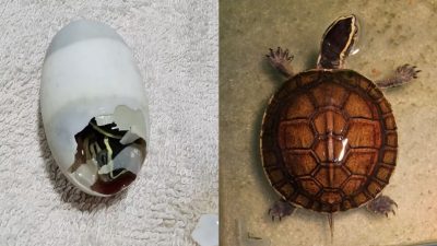 他说:“这类乌龟品种很稀有,我真的尝试了很多年才成功,我原本以为这辈子不可能看到了。受精的蛋在24小时至48小时内会变白,乌龟宝宝之后就会出来。”