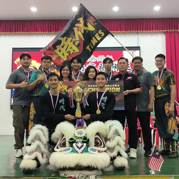 (古来1日讯)新加坡时代文化艺术坊力压群雄,勇夺“张念群杯”马新高桩狮王争霸赛冠军!