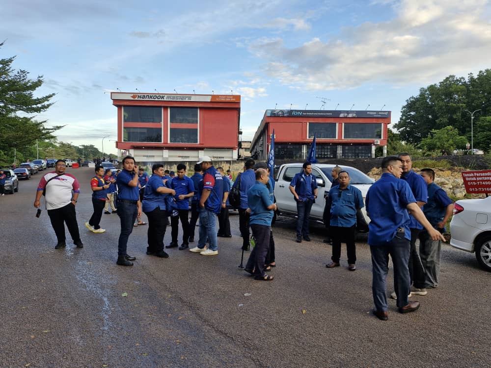 已宣布参与马哥打州席补选的两大阵营国阵和国盟,提名日一早就在充作提名中心的居銮东姑依布拉欣依斯迈礼堂(俗称湖滨公园钟楼礼堂)外集合,为各自的候选人造势。