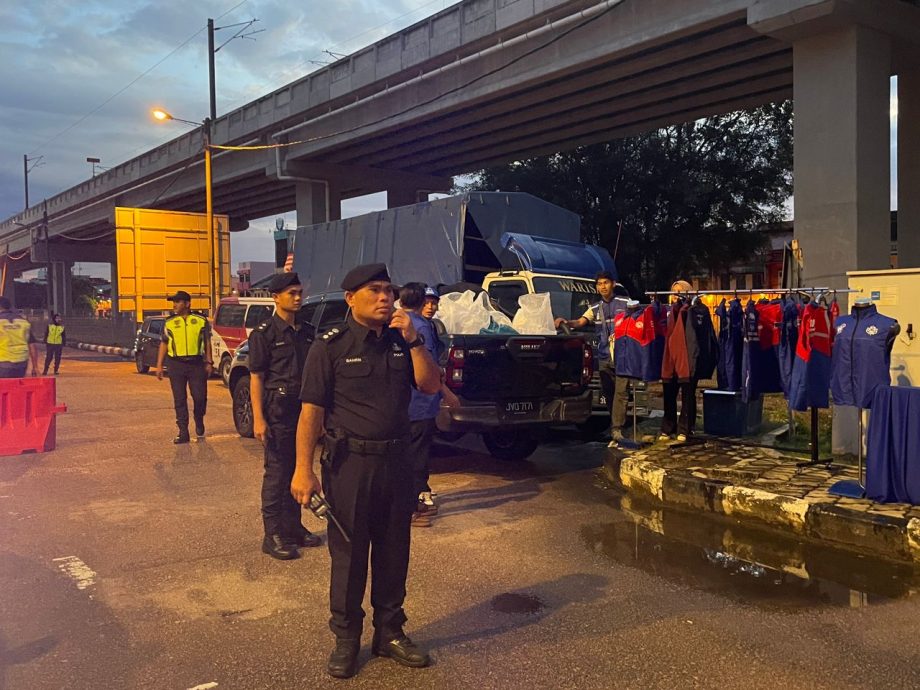 居銮警区主任峇林(左一)清早便在现场安排调度及维持秩序。