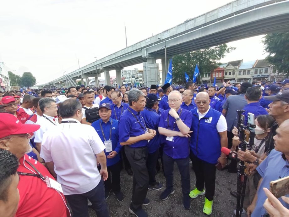 来自希盟和国阵领袖,在游行前率领各自队伍集合,各党涇渭分明。