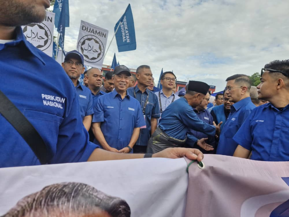 国盟主席慕尤丁抵达现场,为准候选人打气。