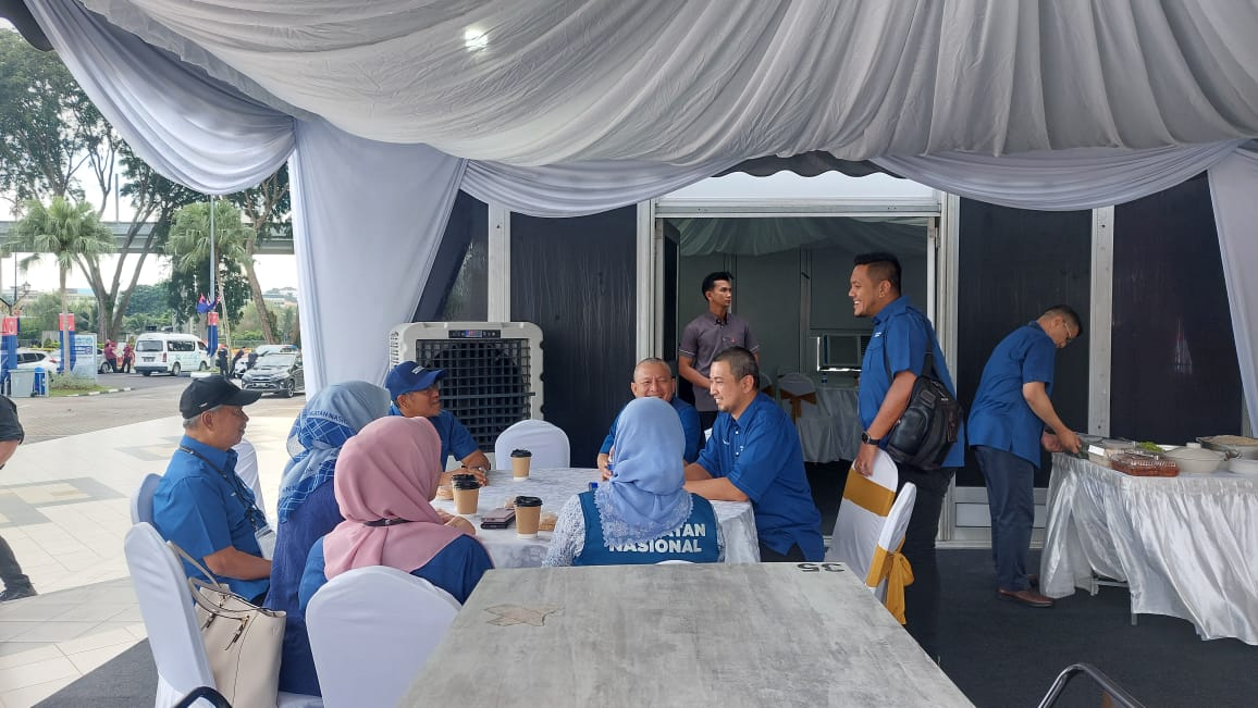 Sabar,先喝杯咖啡;率先进入提名中心的国盟领袖在嘉宾室喝茶。