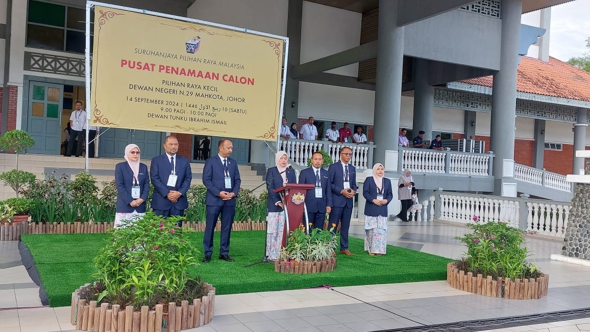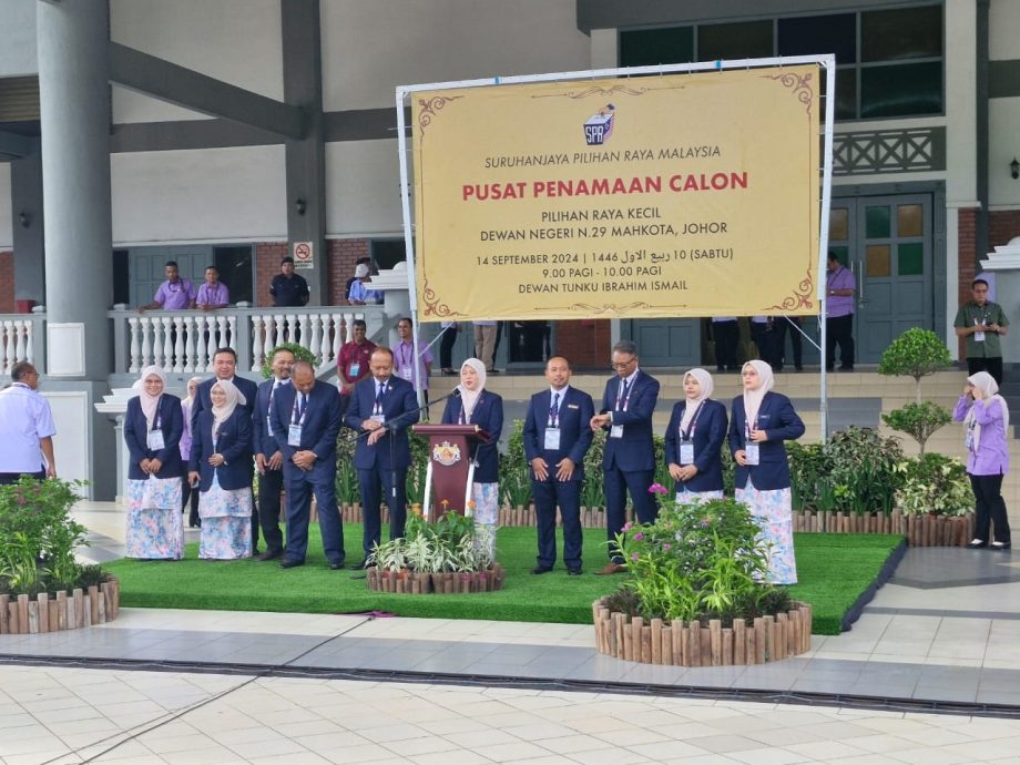 2名候选人在今早9时至10时,前往设为居銮东姑依布拉欣依斯迈礼堂(俗称湖滨公园钟楼礼堂)的提名中心呈交表格。点击全文