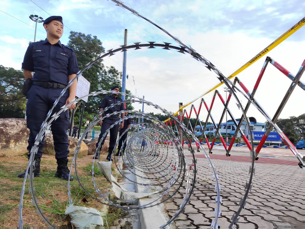 基于各阵营朝野人马支持者即将展开集结遊行,警方清晨开始封锁提名站前500公尺明吉摩路段,禁止车辆通行。