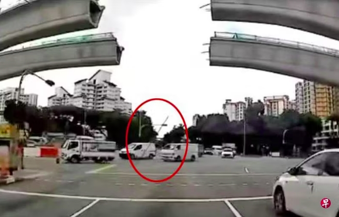 (新加坡3日讯)一支长逾1公尺的突然“从天而降”,差点砸中来往的车辆,惊险万分。