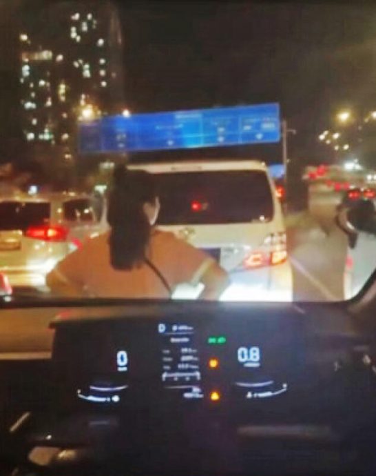 《新明日报》昨天报道,日前一段时长6秒的视频在网络上流传,一名妇女被行车记录器拍下她站在一辆轿车前,不顾其他车主不断鸣笛下,挥手让两辆在狮城注册的车子通过。