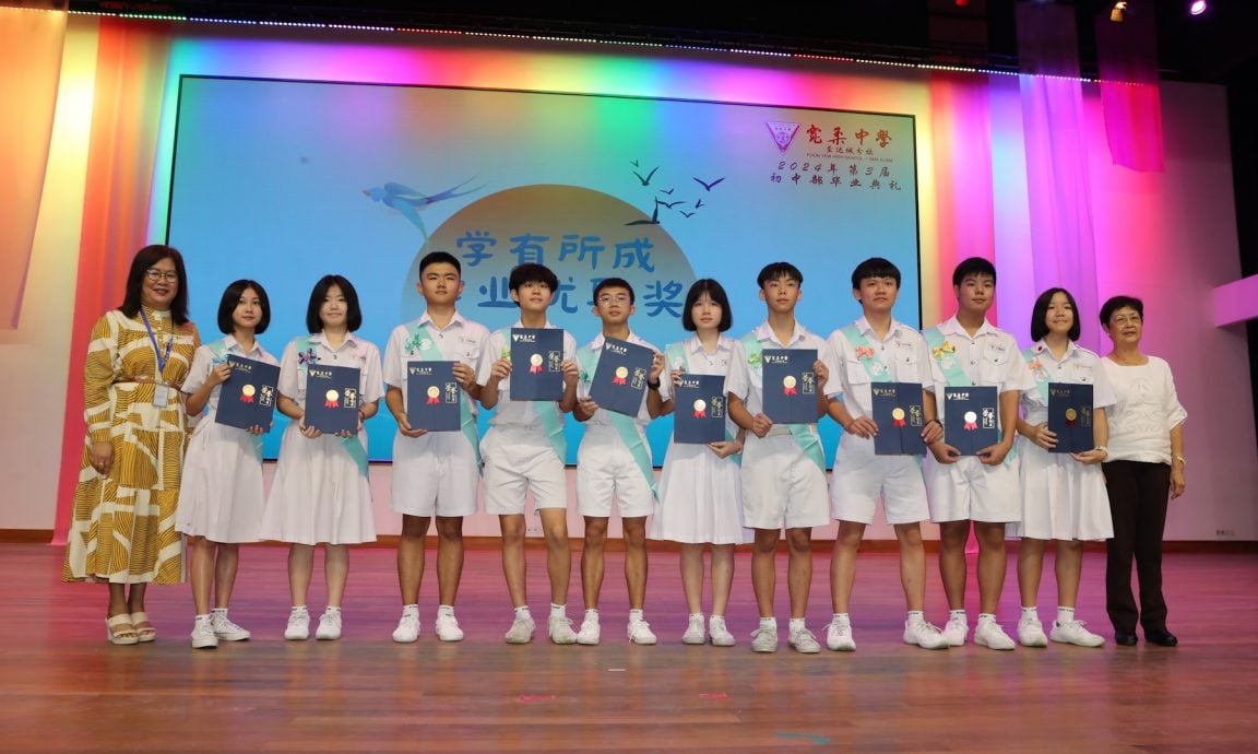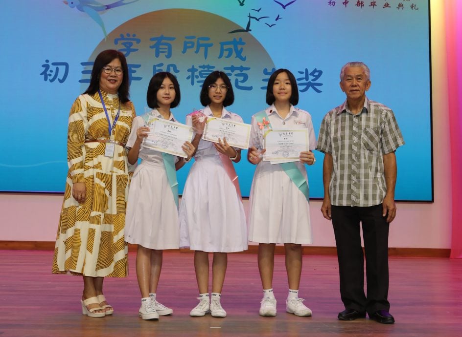毕业典礼获千余名家长出席,会上也颁发奖状给获得学业优异奖的全级前10名学生,以及初三年段模范生范双华、林子涵和尤芷晴。