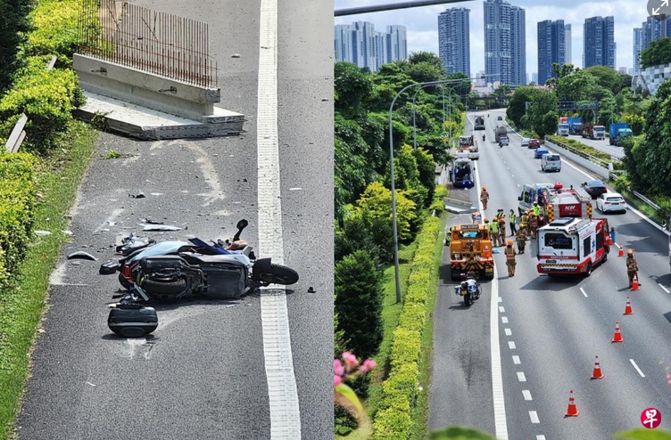 (新加坡29日讯)疑似水泥块从重型拖车掉落砸中摩托车,摩托车骑士命丧公路,司机涉疏忽导致他人身亡被捕。