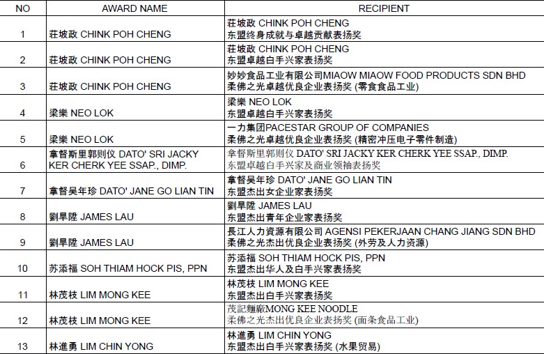 市场情报〡9th白手兴家、2nd柔佛之光表扬盛会圆满 30企业获表彰