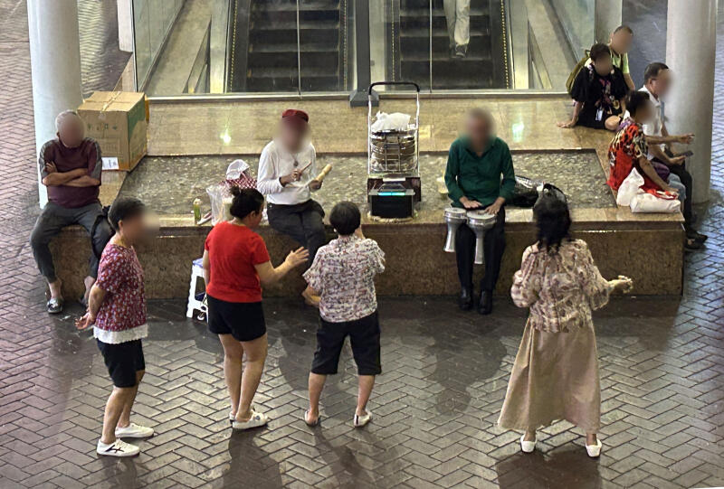 这群被指每晚聚集载歌载舞的男女,主要集中在通往宝塔街的牛车水地铁站出口处。