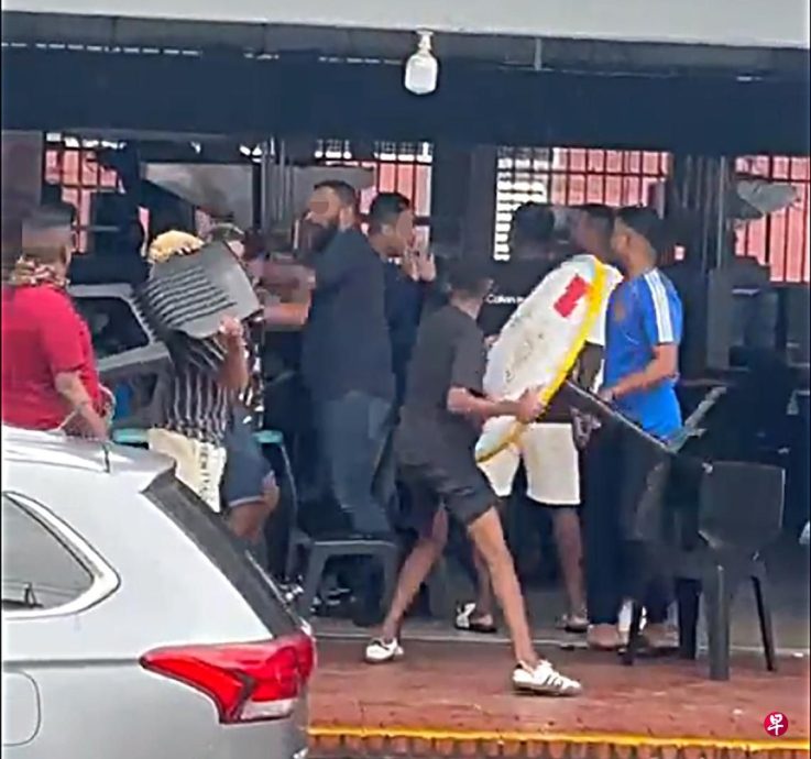(新加坡24日讯)咖啡店发生暴力冲突,两帮人马逾10人斗殴,挥拳相向、桌椅怒砸、持刀砍人,酒瓶碎片散落一地,惊动大批警员到场。