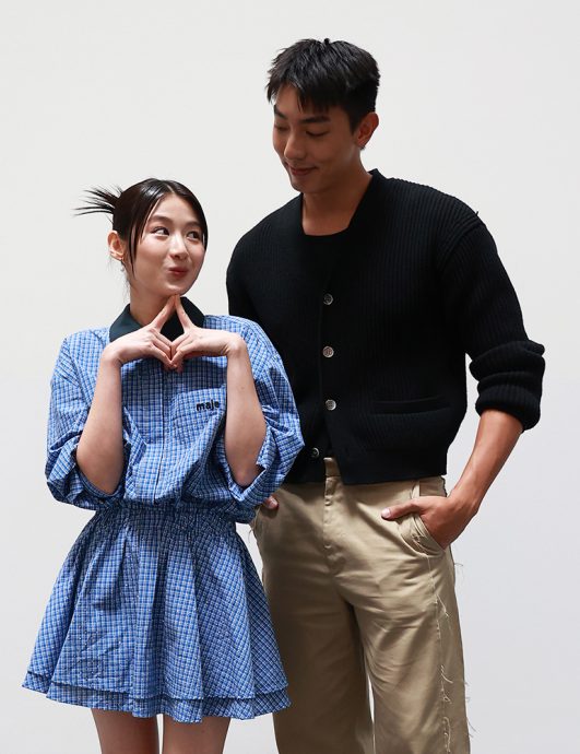 苏凯璇(左)和仲伟杰剧里饰演欢喜冤家的情侣。(新明日报图)