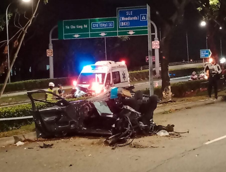 (新加坡5日讯)男子以最高140公里的时速行驶于快速公路,结果转弯时车子失控撞树,车身拦腰断两截,后半段飞到另一条车道,车上的情侣友人一人被抛出车外当场送命,另一人送院不治,昨判坐牢2年,以及吊销各级驾照10年。