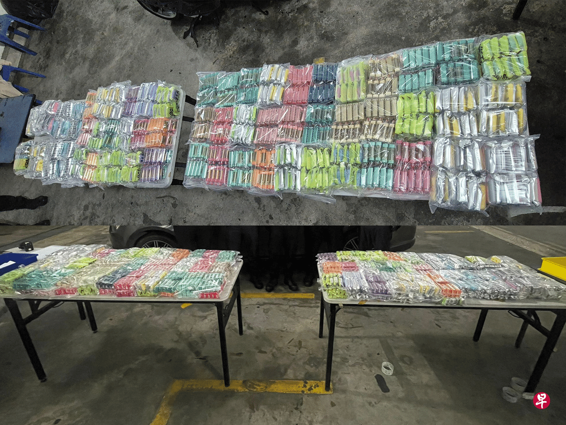 新加坡移民与关卡局昨天在脸书发文称,移民局人员于本月12日在兀兰关卡对这一车辆进行加强检查时,发现车辆的后排座位被改装,里头暗藏1169支电子烟。