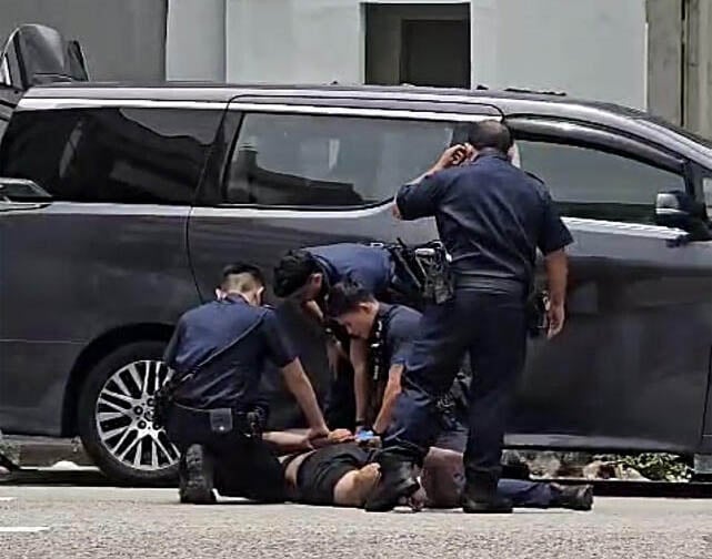 《新明日报》接获读者陈先生(50岁,自雇人士)报料,他当时正开车经过,看到有警车停在路旁,数名警员围着一名躺在地上没穿上衣的男子。