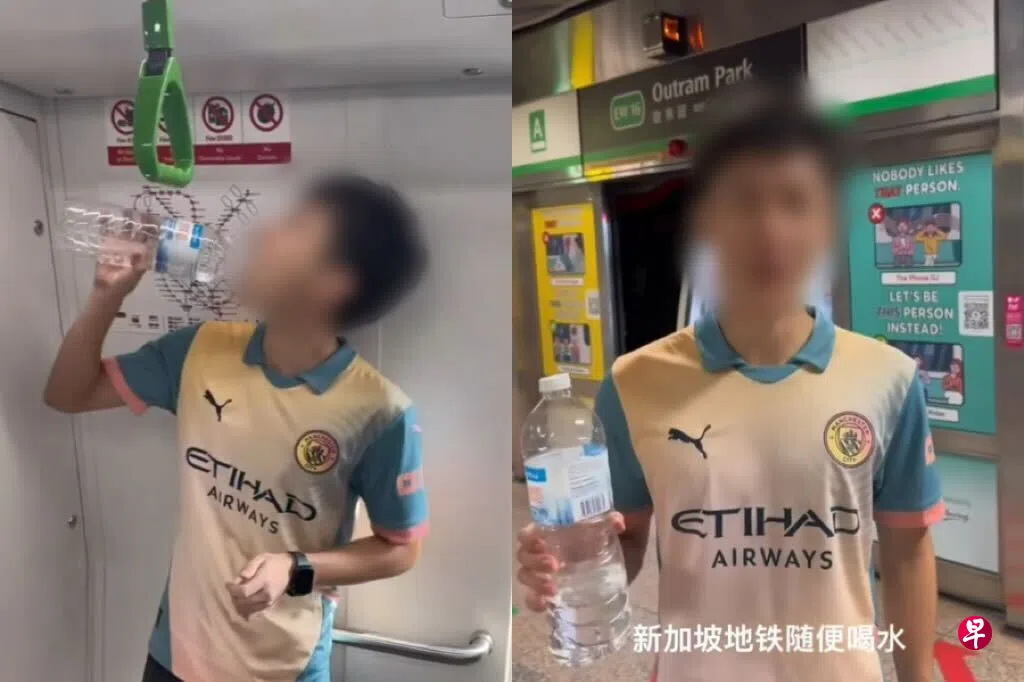 网上流传的一段视频中,这名年轻男子在裕华园站闸门前,用华语称将挑战地铁上禁止喝水的规定。他随后在地铁车厢内,指着注明禁止饮食和罚款500元(新元,约合1637令吉)的警示牌,然后大口喝了手中的矿泉水,还对镜头比赞。视频结束前,他在欧南园站的月台上说:“事实证明,新加坡地铁站(可)随便喝水。”