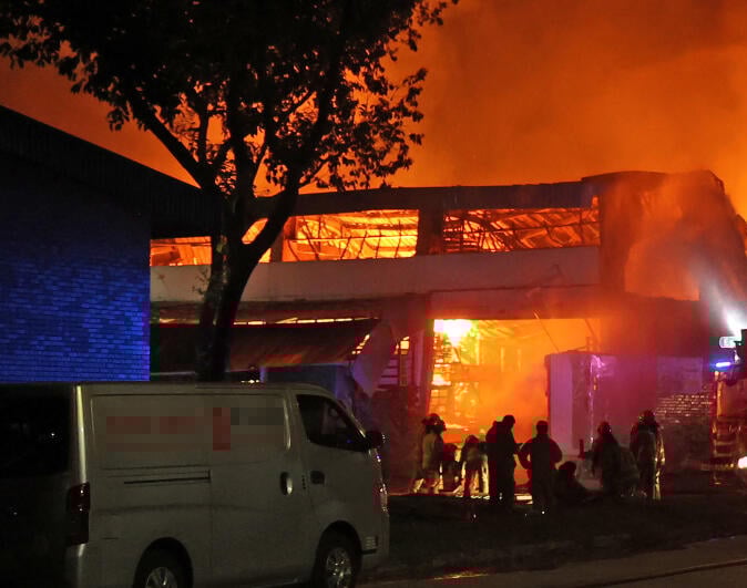 新加坡民防部队昨天在脸书上不停更新火势情况,火势吞噬3家厂房,另外一个厂房的部分屋顶也受影响。民防人员在晚上8时30分控制火势,并在深夜约11时把火扑灭。