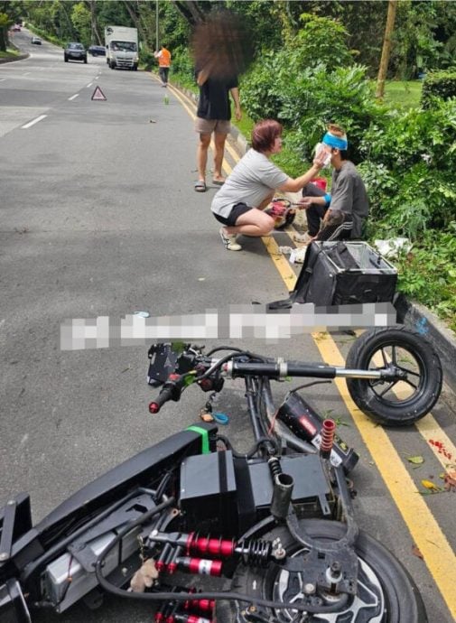 另一张照片可见,民防部队医护人员稍后到场救援,并为男子包扎伤口,另一名相信是路人的女郎也为受伤骑士擦拭脸部。