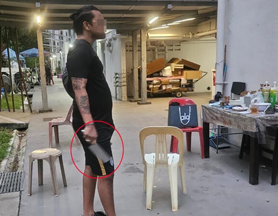 另一名在场居民丹尼(53岁,私召车司机)则说,他见状也顺手拿起旁边的晾衣杆准备反击,还追着男子跑,但对方听到他们报警后,当场丢下刀具拔腿狂逃。
