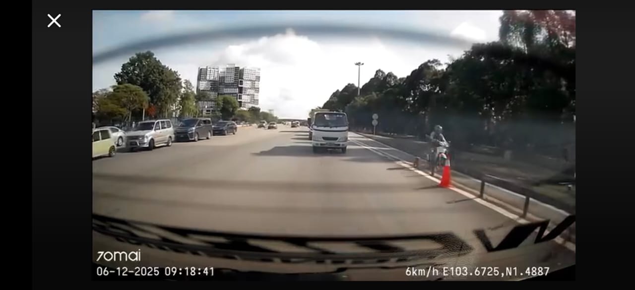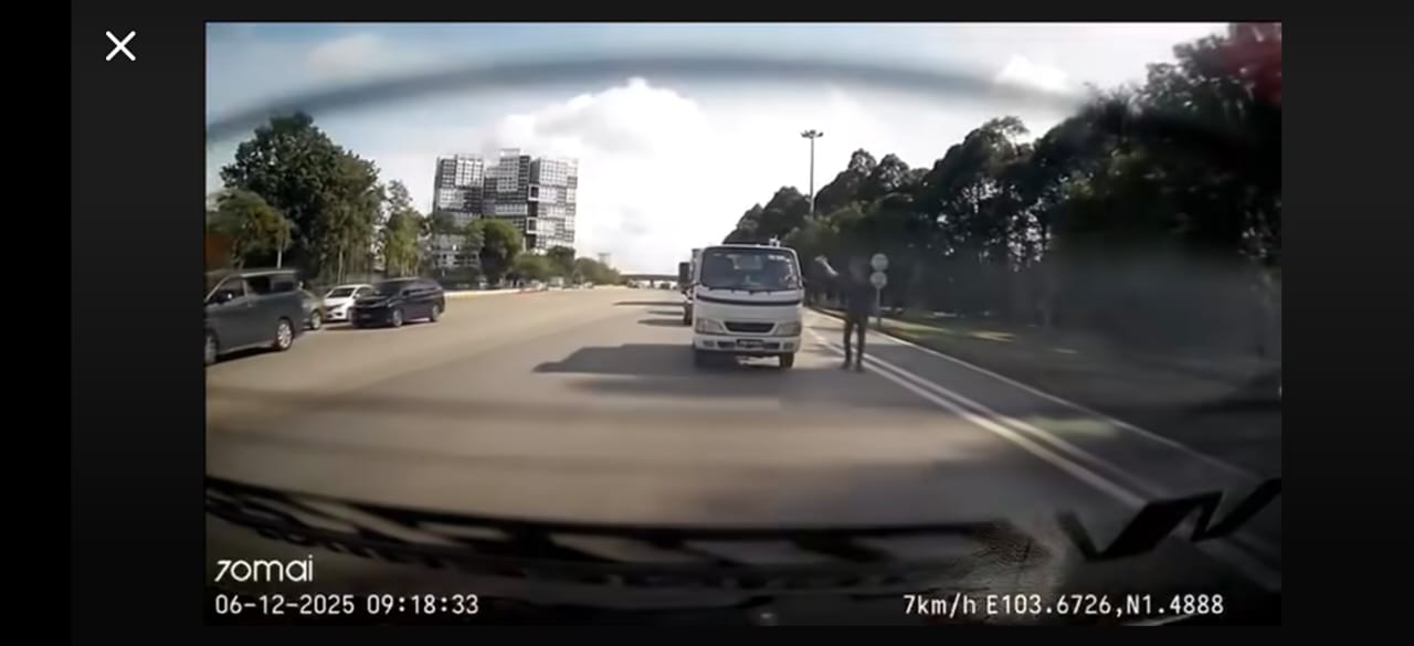 一则不到20秒的事发现场视频今日在社交媒体上流传,画面显示,一名身穿深色圆领恤衫和长裤的男子,从路旁越过摩托车道,走向在路上缓慢行驶的罗里,并对著罗里说了几句话,说时比手画脚,表情和动作看似有些激动。