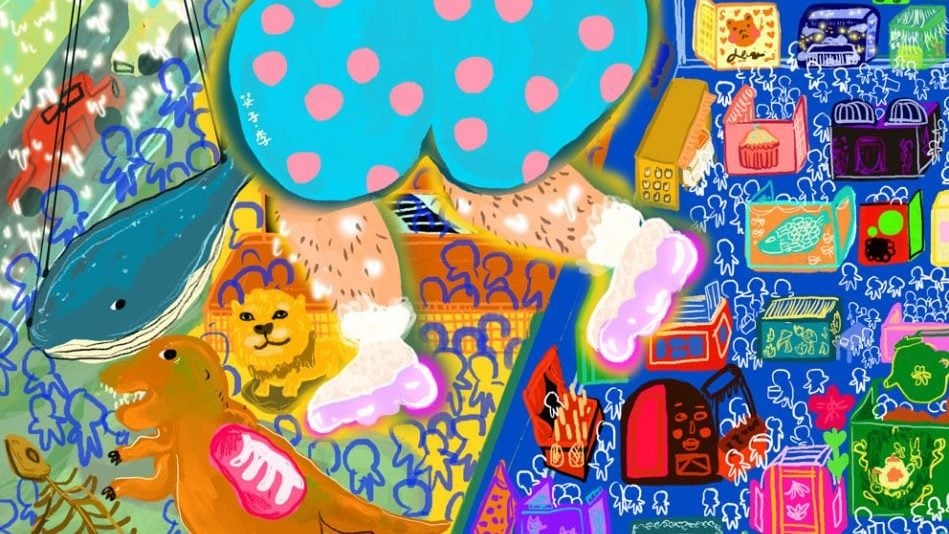 赴上海参加上海插画艺术节。炎炎夏日体感温度44度,每天走在烈阳之下有种小笼包被锁在蒸笼的感觉。 这是第一次海外参展,有八百多摊,见识到很多大神级别的画家,甚至在我隔壁摊的邻居日本人也是殿堂级的动画师,备感荣幸。 博览会展馆范围无敌大,从门口走到摊位大概要1.5公里,几天走下来除了汗细胞被榨干,小腿都练出了五块肌肉。印象深刻的还是到处都是人,人山人海已经不能形容,是铺天盖地的人。 展会结束后去了上海自然博物馆,在艳阳烘烤之下排队抢票,怎知成功入场后还是源源不绝的排队,入场的时候场内已经有5000人。我边看成千上万的标本,边思考“这里是人比较多还是标本比较多?” 上演了几个小时的人贴人,但看到恐龙模型和化石,还有齐全动物标本的时候心里各种感动,心中自带侏罗纪公园的背景音乐,默默期待下次再回来看恐龙。 更多作品: 李英子/粤语歇后语 李英子/梦核游泳 李英子/窗户与自由