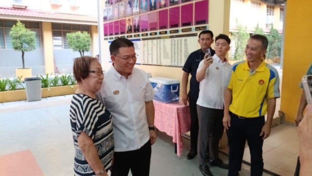 房屋及地方政府部长倪可敏莅临哥市中华学校,并拨款10万令吉给该校作为礼堂建设经费。