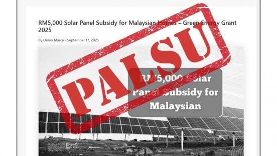 我国家庭用户可在2025年绿色能源补助金下获5000令吉太阳能电池板补贴?假的!能源及水务转型部促勿轻信。