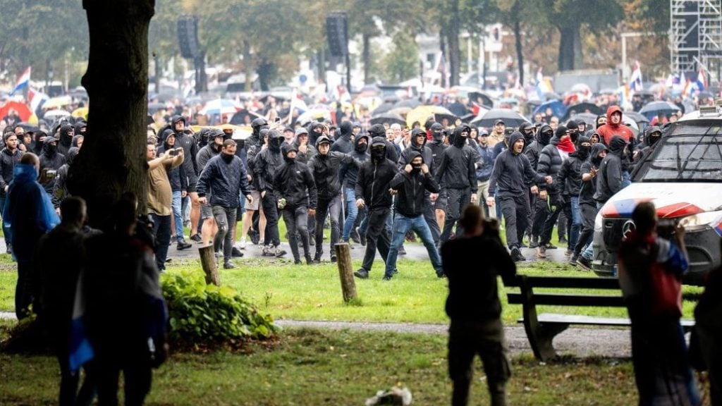 海牙反移民示威爆冲突 烧警车封锁公路至少30人被捕