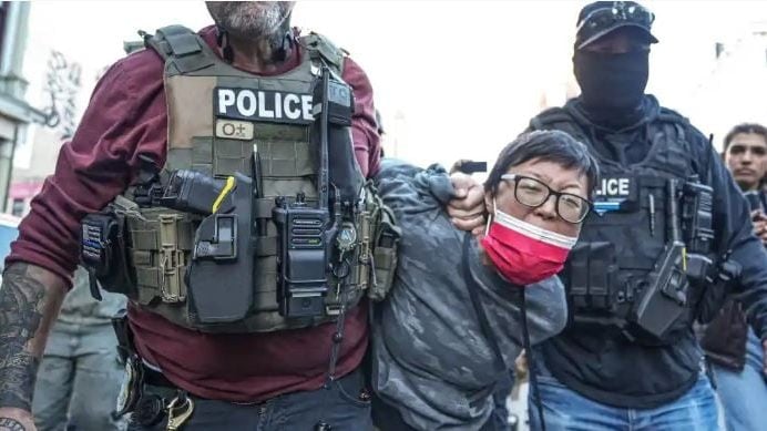 美国移民及海关执法局(ICE)周二在纽约曼哈顿唐人街展开“小贩扫荡行动”,期间与当地民众爆发激烈冲突。示威群众不满执法局人员当街抓人,他们包围执法车辆、高喊ICE滚出纽约,双方发生推撞,场面一度陷入混乱。
