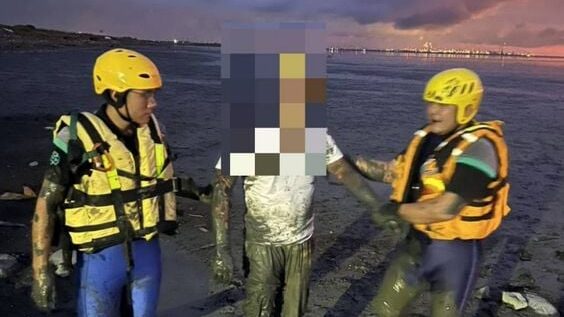 海堤拍夕阳美照惨陷泥滩 男子下半身全埋20分钟