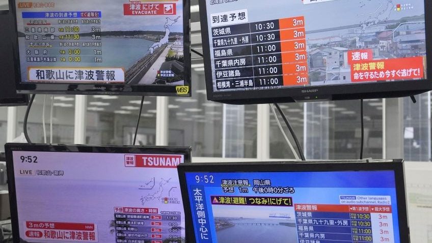 俄罗斯堪察加半岛周三上午发生8.7强震,随后发生多起余震,且引发海啸。日本气象厅紧急针对北海道至和歌山县太平洋沿岸发布海啸警报,海啸已抵达北海道,其中广尾町则观测到40公分海啸抵达。日本首相石破茂则呼吁居民,应立刻前往高地或安全场所避难。