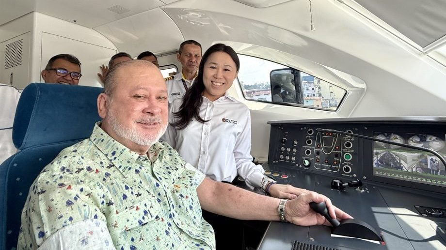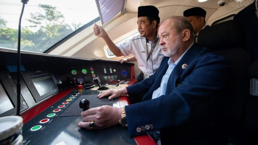 国家元首苏丹依布拉欣今日亲自驾驶马来亚铁道公司的双轨电动火车(ETS),从吉隆坡往返万挠,全程约1小时,展现对铁路服务的关注与热情。