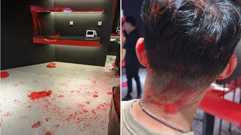 新加坡一名男子到大马新山一家刚开业不久的发廊理发,不料竟然有人朝店面泼红漆,男子因此也无辜被泼一身漆,所幸并无受伤。发廊代表事后在社媒澄清没欠大耳窿,也没跟人结怨。
