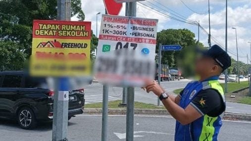 为确保张挂在管辖区内的广告布条和横幅符合相关条例,瓜拉冷岳市议会日前在斯里加罗玛斯花园一带展开“取缔无证广告与布条行动”。