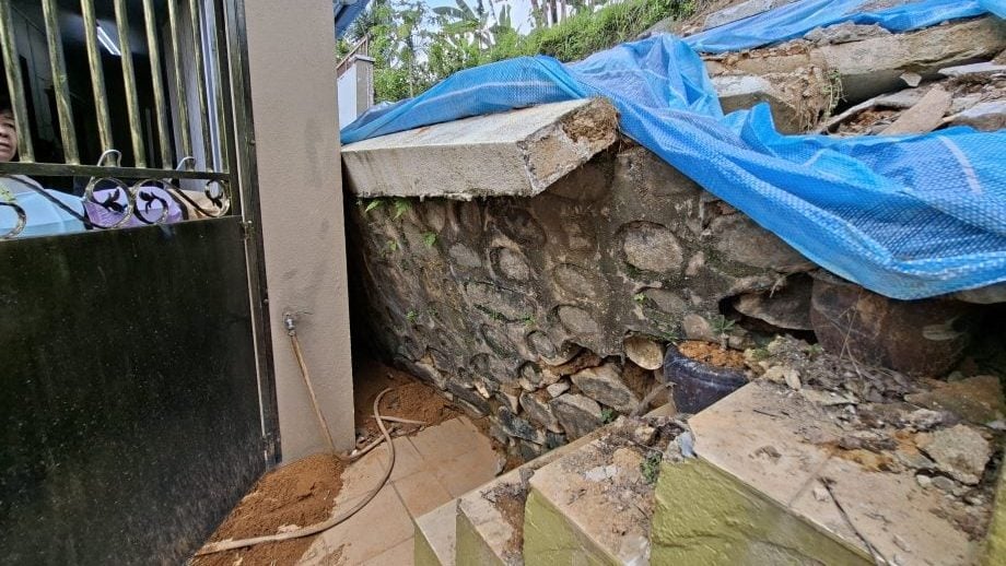 (加影6日讯)屋后斜坡围墙坍塌,面对连日大雨导致泥土严重松懈,担心厨房会被坍塌围墙推压造成破坏,女屋主要求加影市议会尽快抢修。 指听到雨声无法好好入眠 住在万宜新镇第5区的成太太,她屋后斜坡是在9月10日发生坍塌,现在听到下雨声就会担心屋后情况是否恶化,令她无法好好入眠。 她感谢万宜国会议员在事发后提供协助,加影市议会已安排工作人员到场铺上防水布,清理沟渠助排水,可是修复工作还未进行,她担心雨季加速恶化。 万宜国会议员助理魏子权接到她的求助后,与《大都会》社区报记者前往视察。 泥泞不断涌入庭院厨房 成太太表示,她原本行动不便,就睡在楼下的睡房,只是坍塌事件发生后,她暂时在楼上睡房休息,一旦大雨来袭,她会非常紧张,因为坍塌现场泥泞不断涌入庭院和厨房,令她十分困扰。 “如果没有下雨,我是不会太担心,只是现在几乎每天都下雨,坍塌的围墙未清理,泥土受到雨水松懈,很怕厨房被破坏,我希望加影市议会尽快协助解决。” 魏子权:市会正积极处理 魏子权表示,他明白女屋主的担忧,而市议会方正在积极处理,只是从开档到委任承包商过程需要时间,他会协助女屋主跟进此事。 他说,他已向女屋主解释市议会需要时间处理,从现场所看,确是要尽快紧急抢修,至少先清理坍塌的围墙。 他重申,事件发生后,市议会协助女屋主采取防范措施,只是近日频频下雨,女屋主的担心是可以理解的。