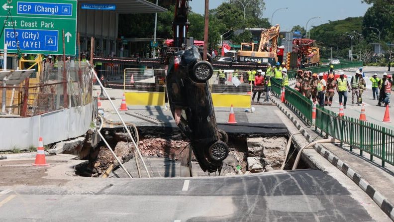 狮城路陷 | 丹戎加东地陷初步调查 狮城公用局:毗邻阴沟工程发生意外牵连