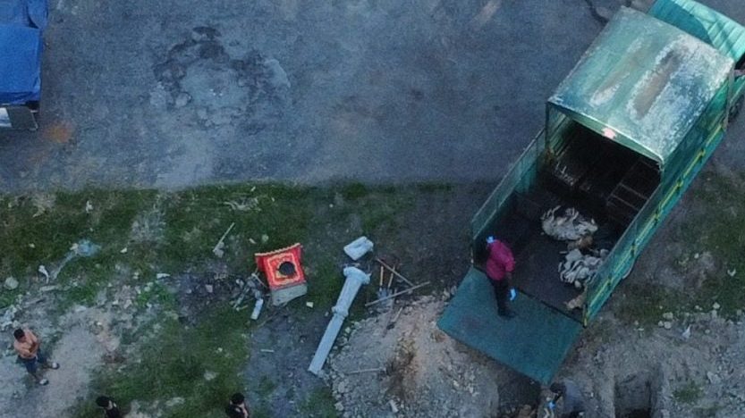 疑似预先挖坑 怡市厅埋狗尸视频照片疯传