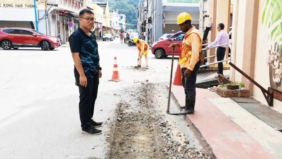 国能公司承包商在华人大会堂前的马路进行挖掘以装置电缆工程后,至今一个月没有修补留下的手尾,使到马路上出现长长的坑洞,严重威胁民众的安全。