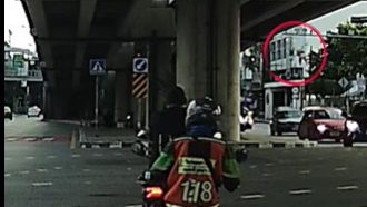 男子从新山关卡前行人桥坠落 行经车辆全程录下